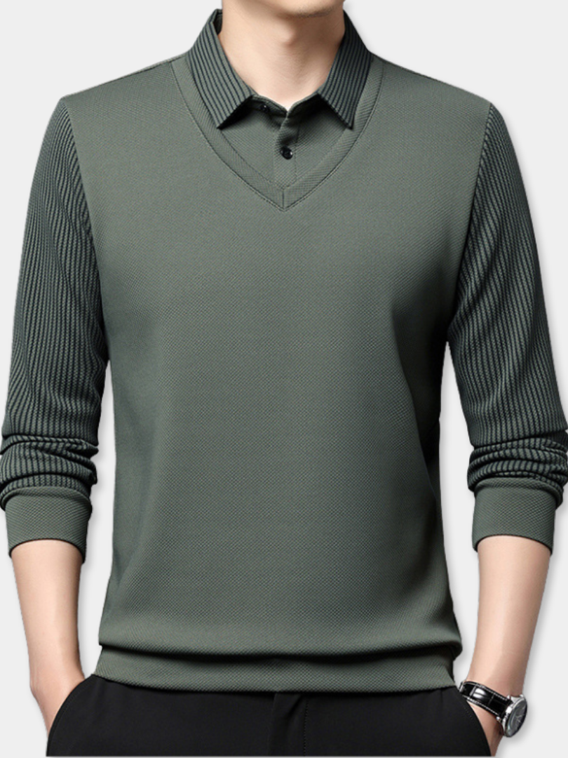DUCHÊNE BORDEAUX™ | CHEMISE-PULL 2 PIÈCES À COL CONTRASTÉ